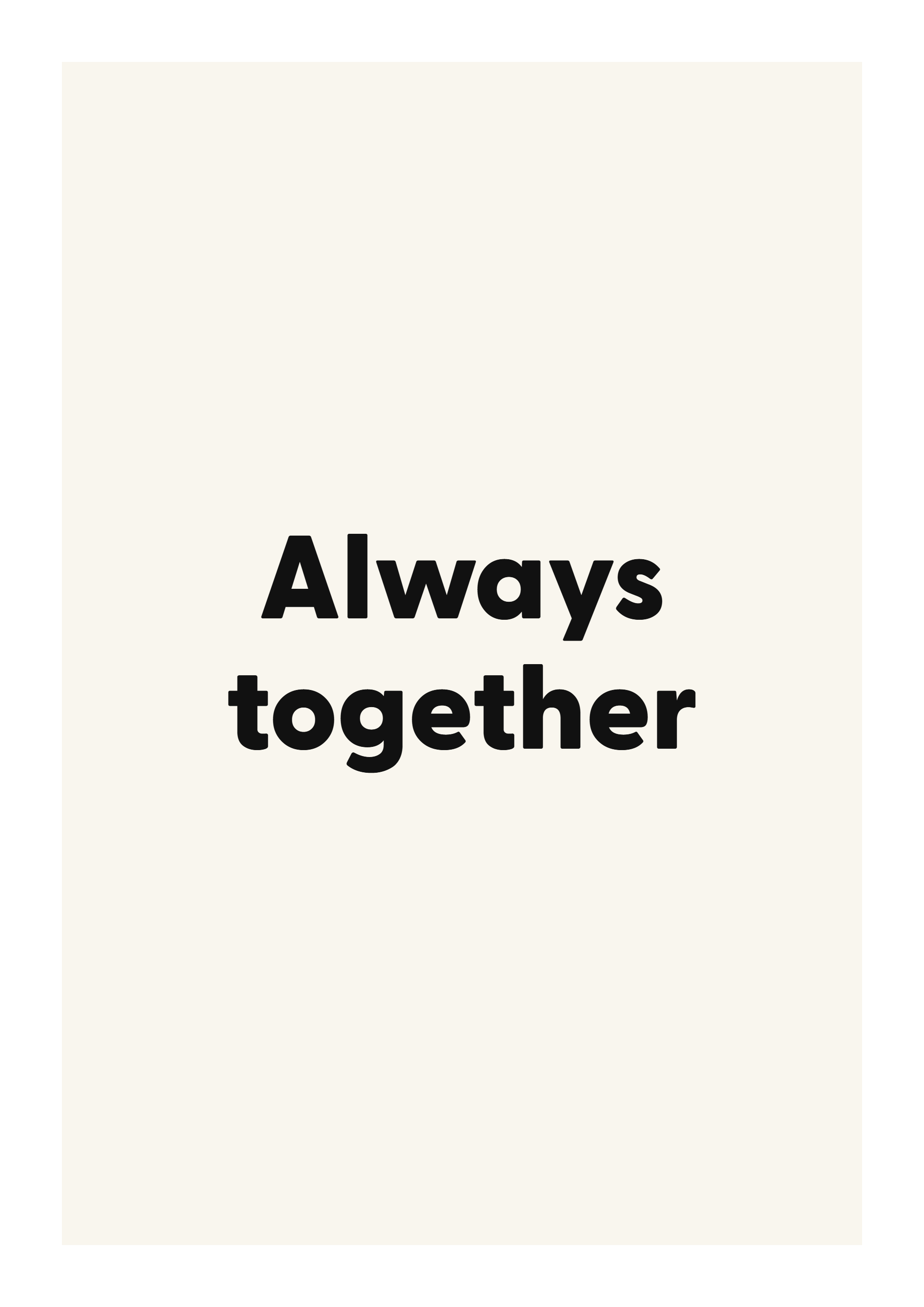 A romantic typography print featuring “Always together” — ideal for bedrooms, weddings, anniversaries and couples gifting.