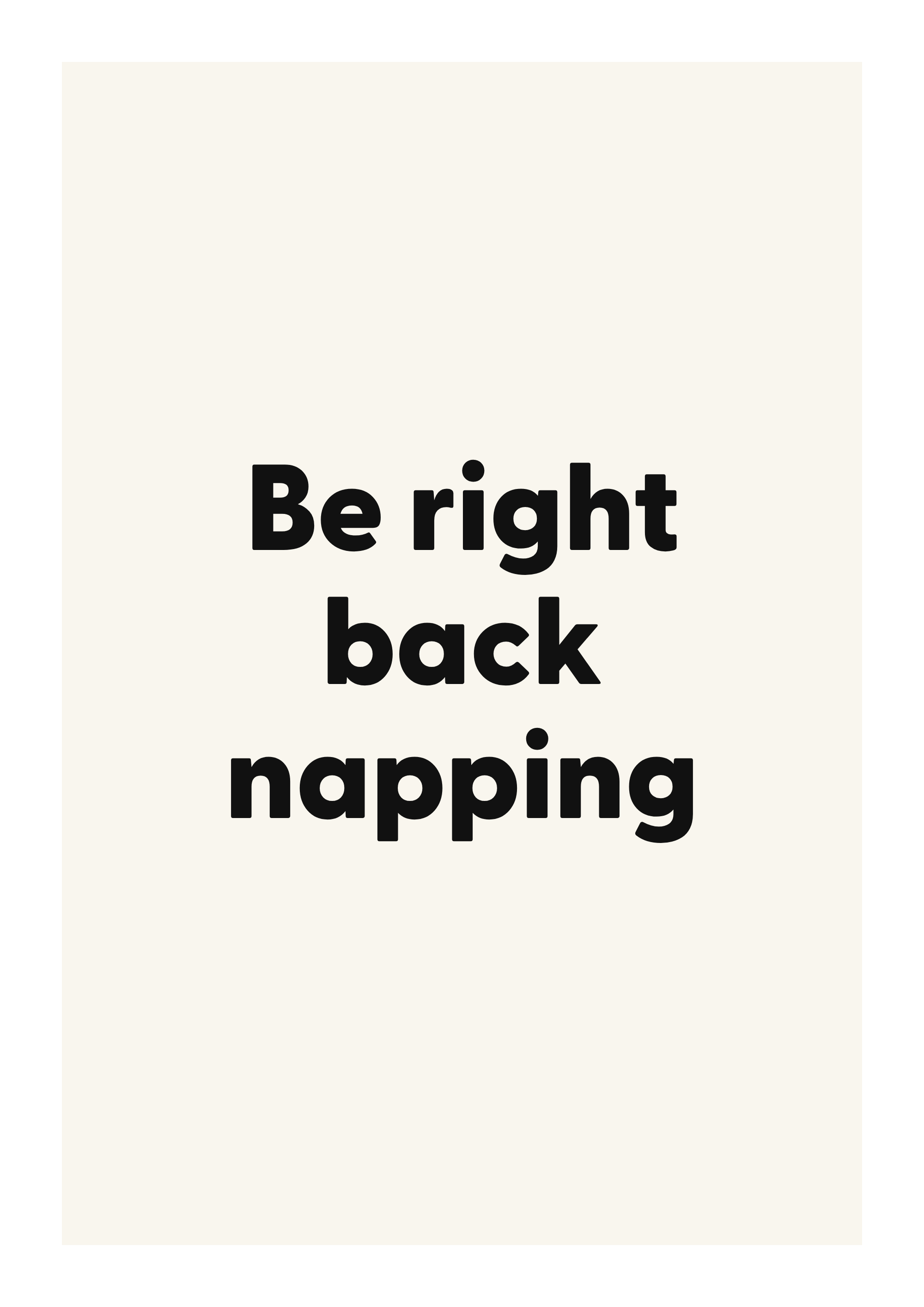 Make your gallery wall feel more expressive with this bold, playful quote poster. Featuring the words “Be right back napping”, this design is made to feel personal without overwhelming the room.