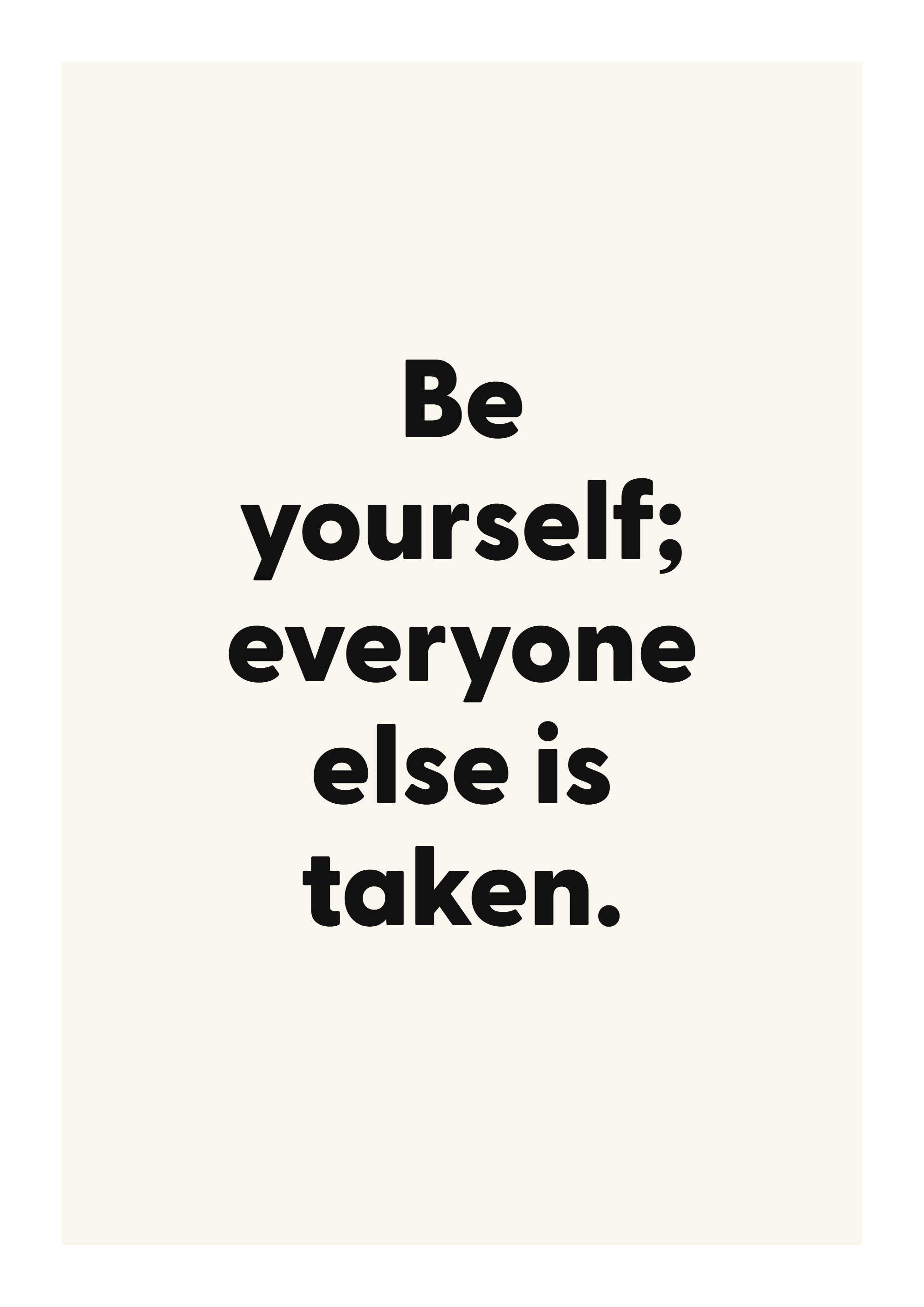 Add a daily reminder of perspective and momentum with this motivational quote poster. Featuring the words “Be yourself; everyone else is taken.”, this design is made to feel personal without overwhelming the room.