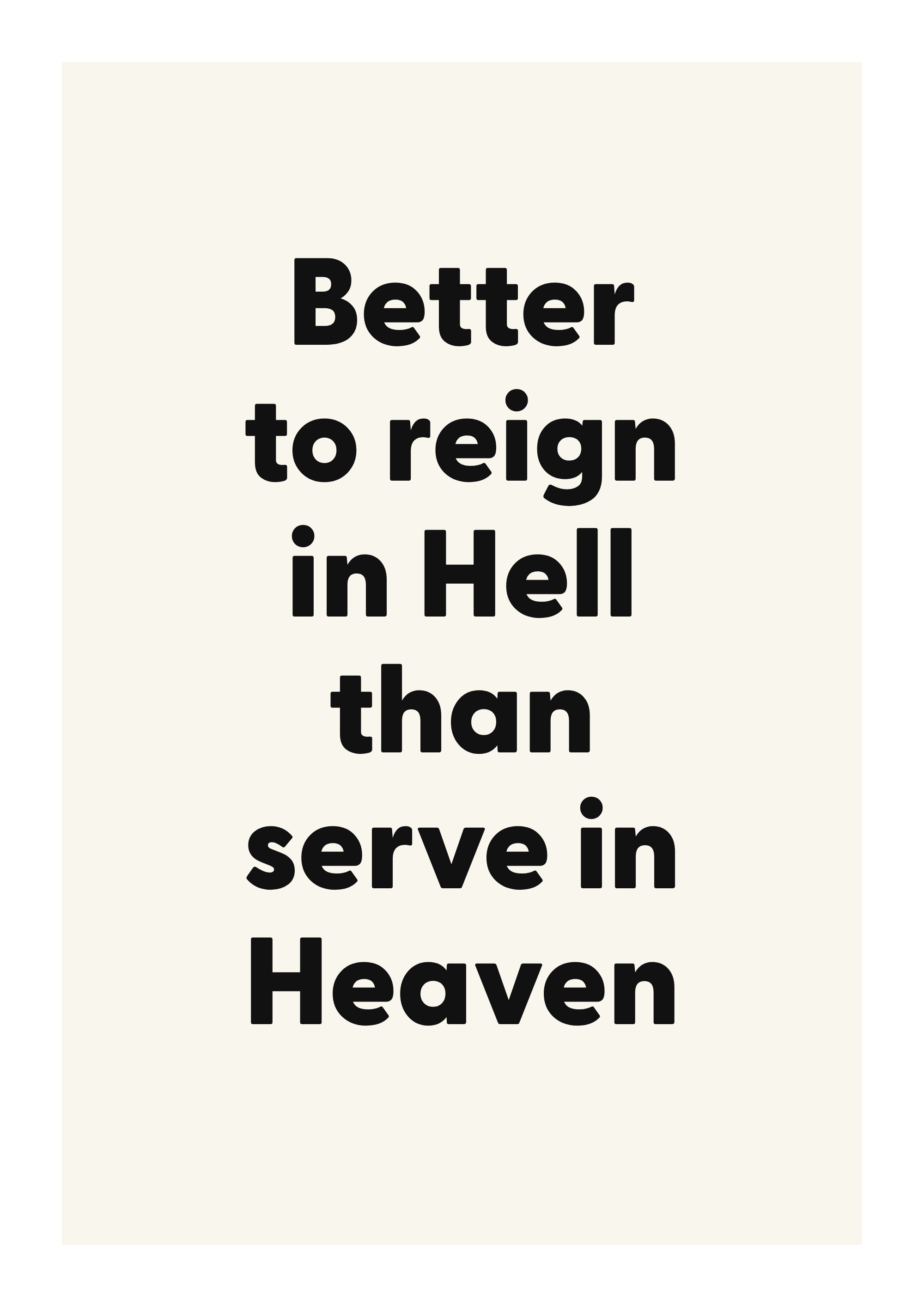 Bring sharp humor and zero-filter energy to your space with this adult quote poster. Featuring the words “Better to reign in Hell than serve in Heaven”, this design is made to feel personal without overwhelming the room.