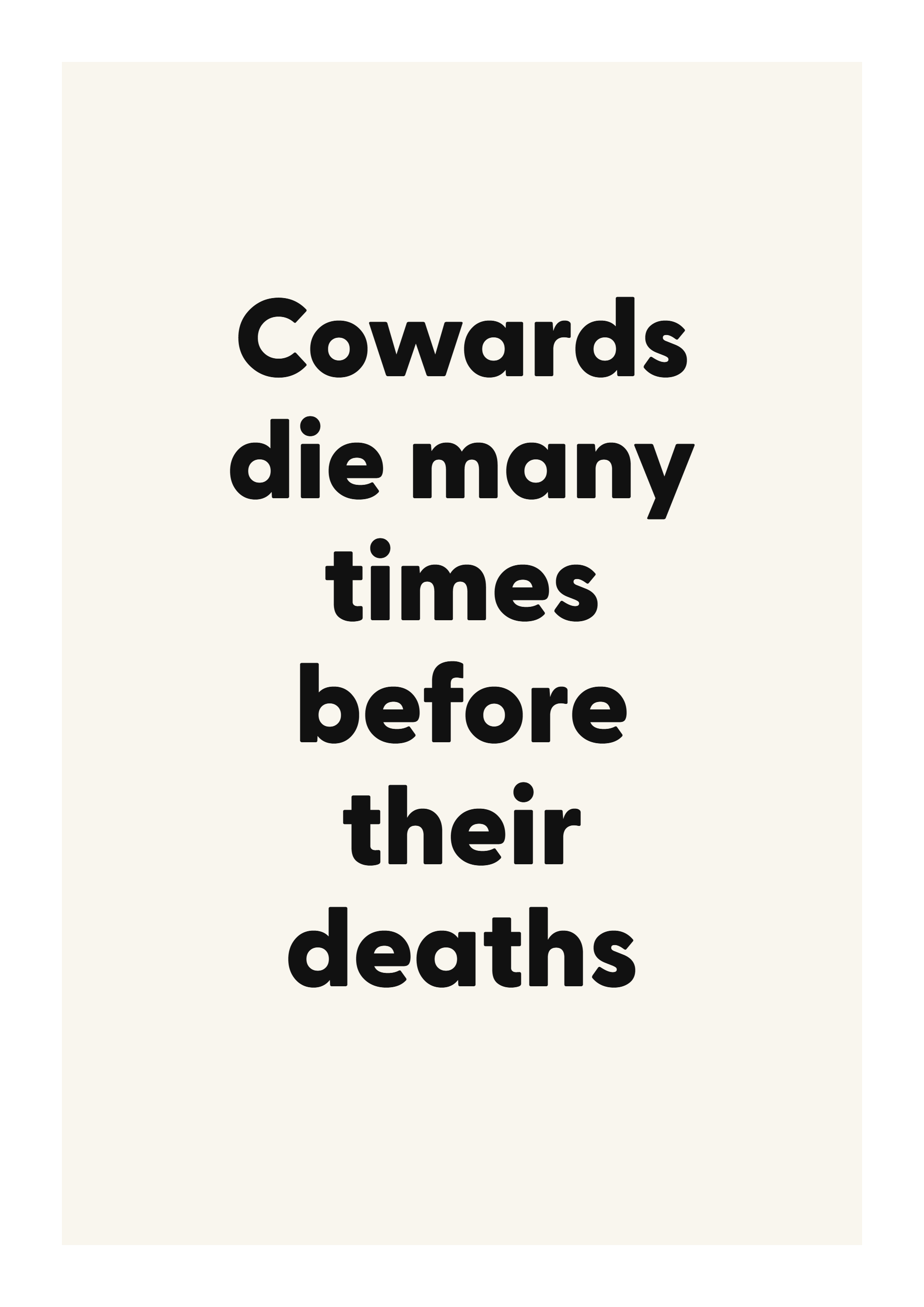 Celebrate timeless writing with this literary quote poster, designed for readers and thoughtful interiors. Featuring the words “Cowards die many times before their deaths”, this design is made to feel personal without overwhelming the room.