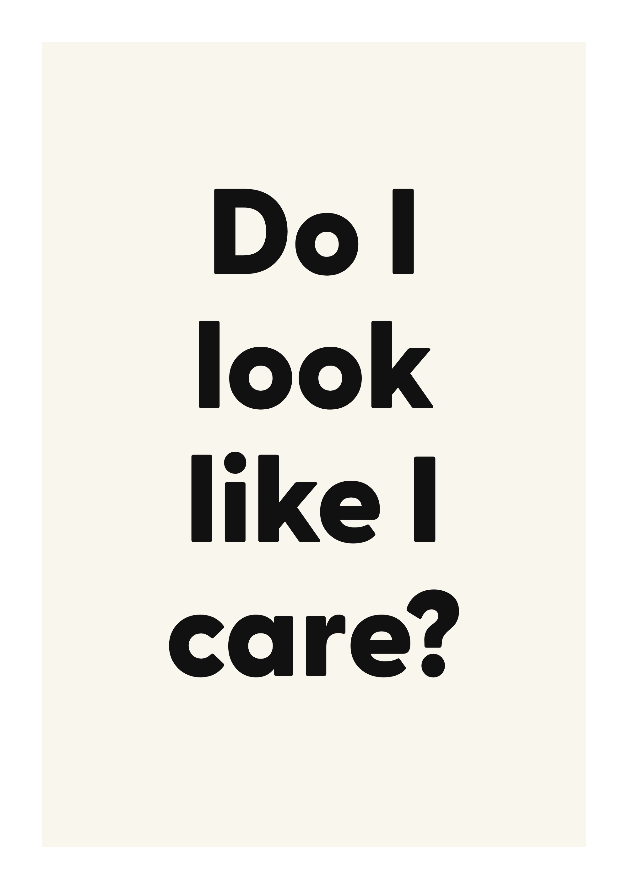Bring sharp humor and zero-filter energy to your space with this adult quote poster. Featuring the words “Do I look like I care?”, this design is made to feel personal without overwhelming the room.