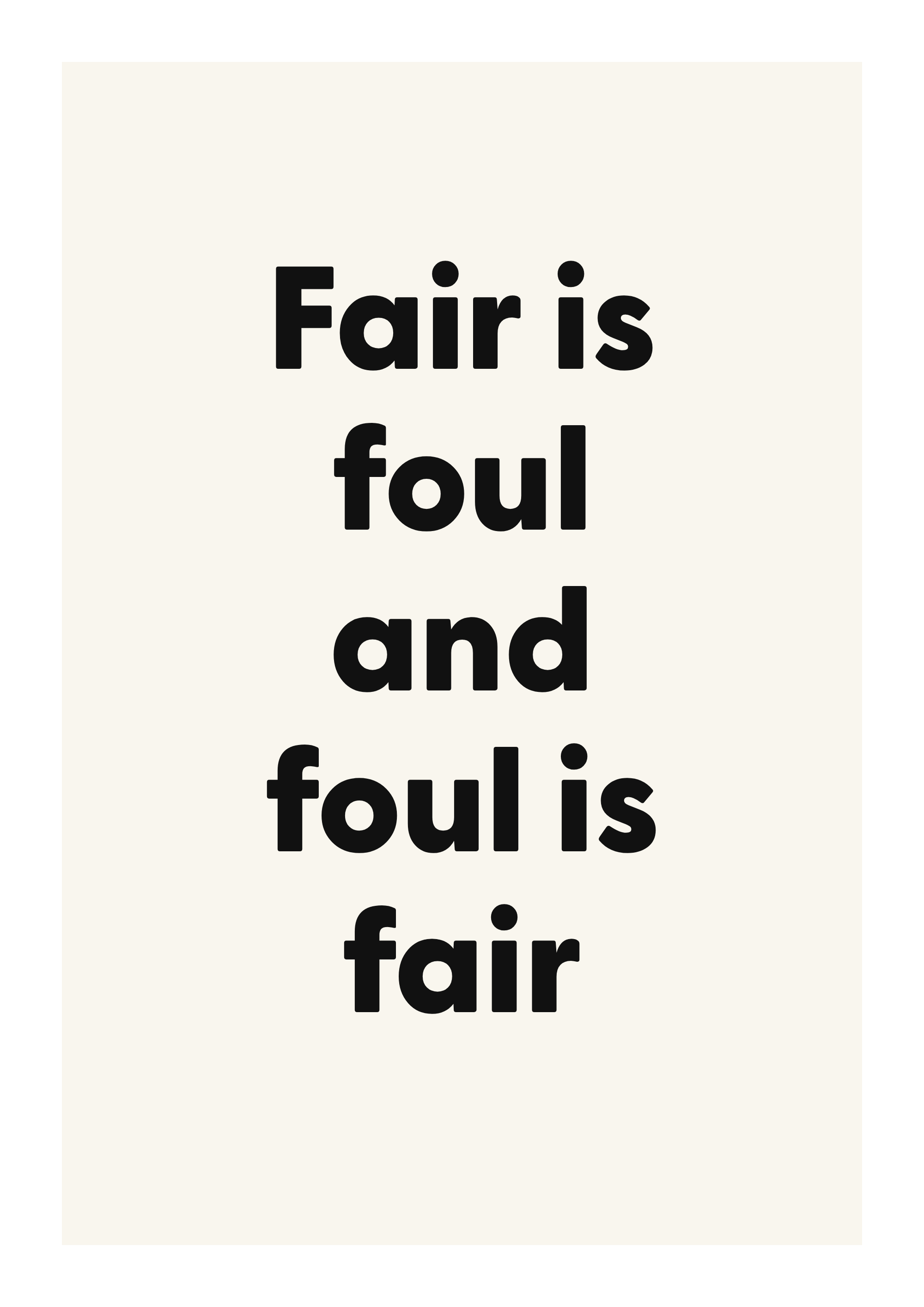 Celebrate timeless writing with this literary quote poster, designed for readers and thoughtful interiors. Featuring the words “Fair is foul and foul is fair”, this design is made to feel personal without overwhelming the room.
