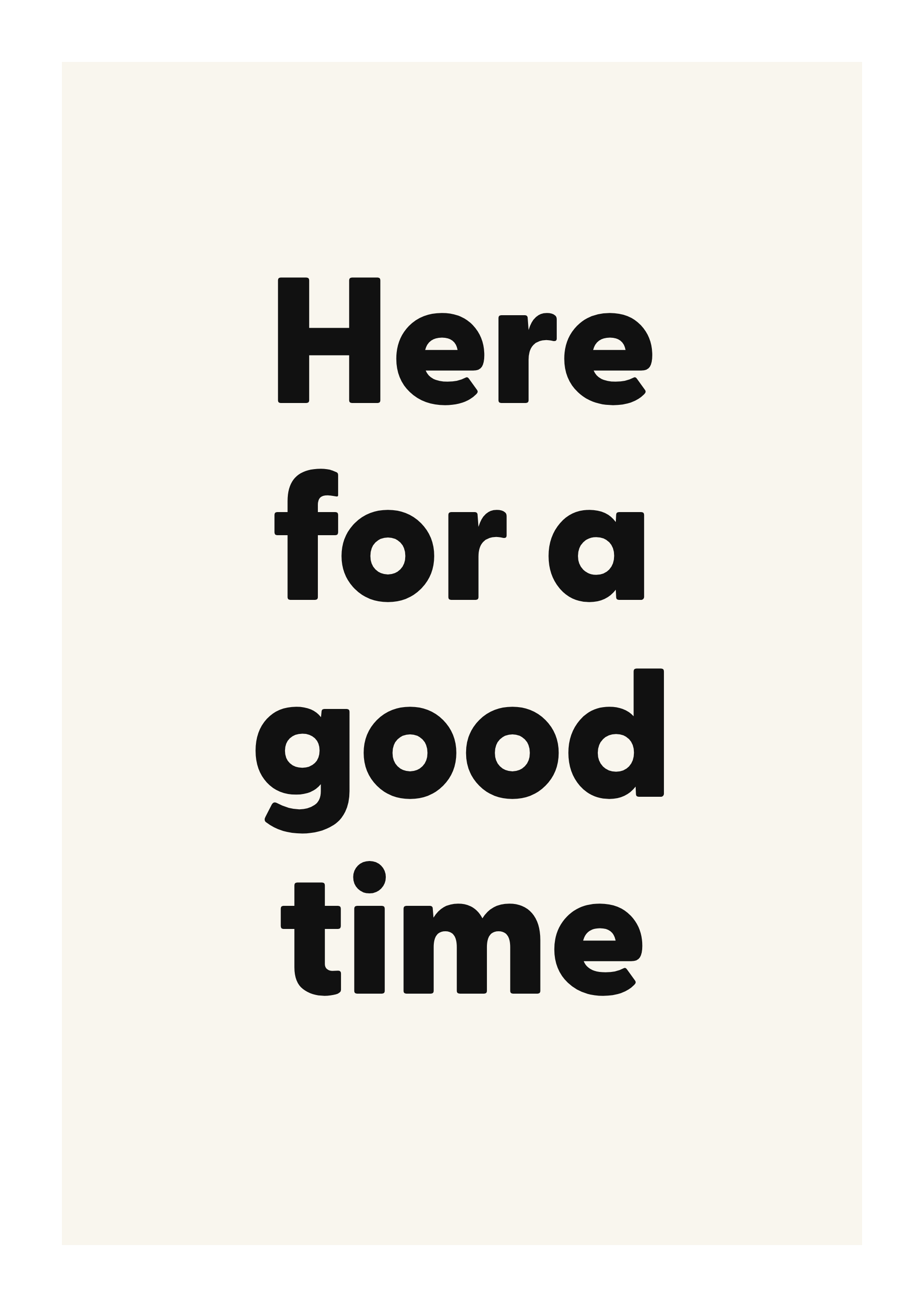 A bold statement typography print featuring “Here for a good time” — designed to add personality to a modern gallery wall.