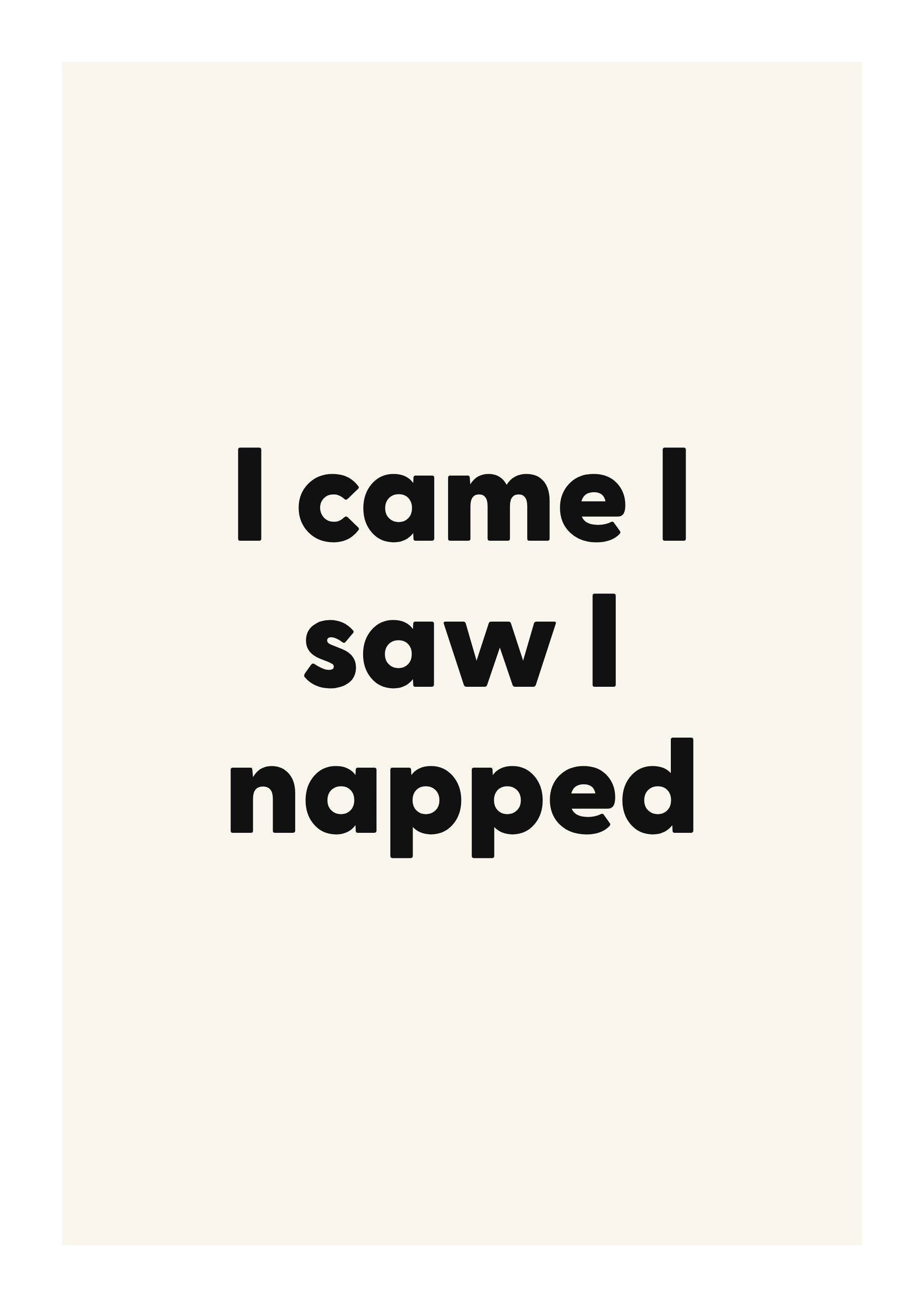 A bold statement typography print featuring “I came I saw I napped” — designed to add personality to a modern gallery wall.