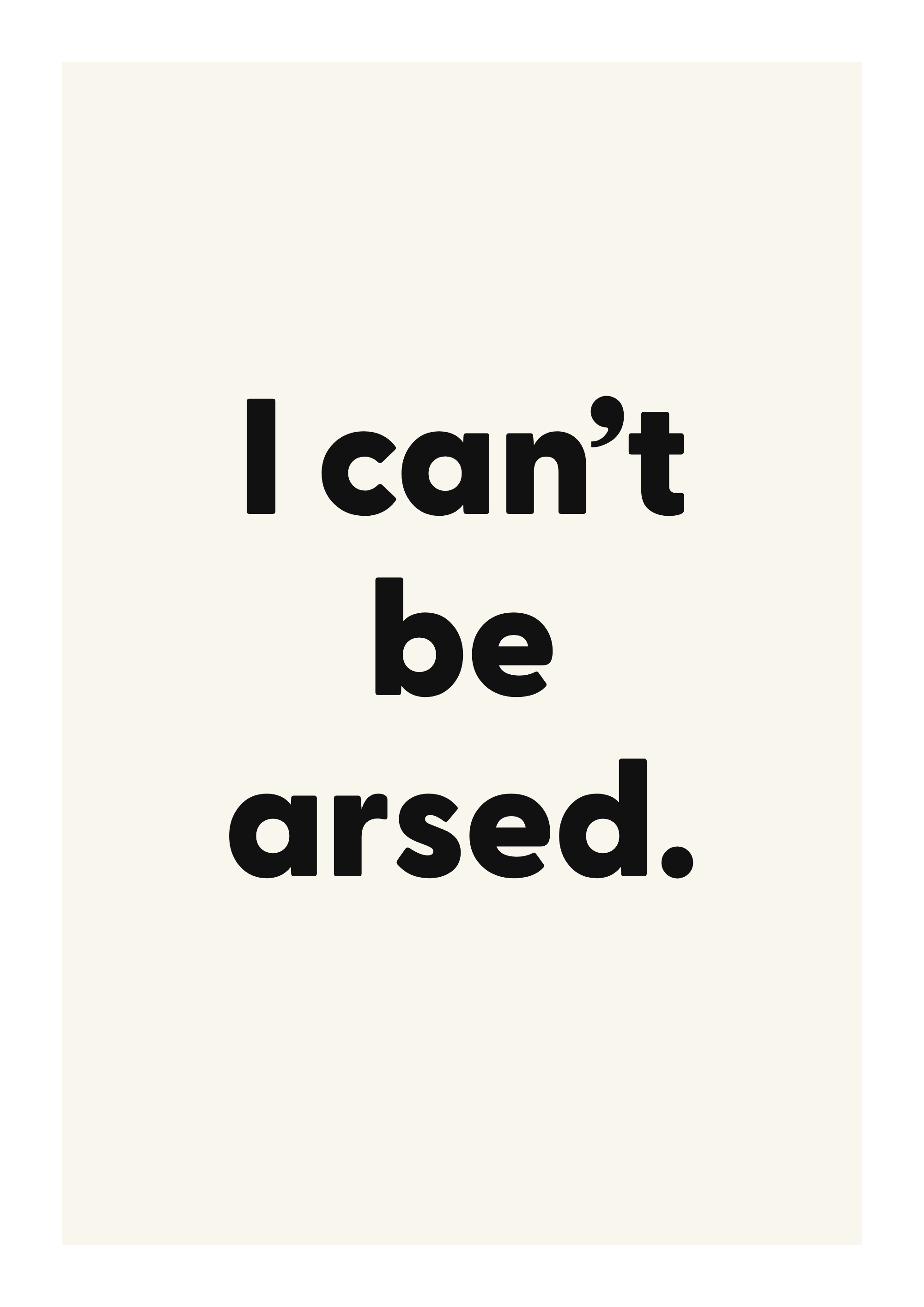 Bring sharp humor and zero-filter energy to your space with this adult quote poster. Featuring the words “I can’t be arsed.”, this design is made to feel personal without overwhelming the room.