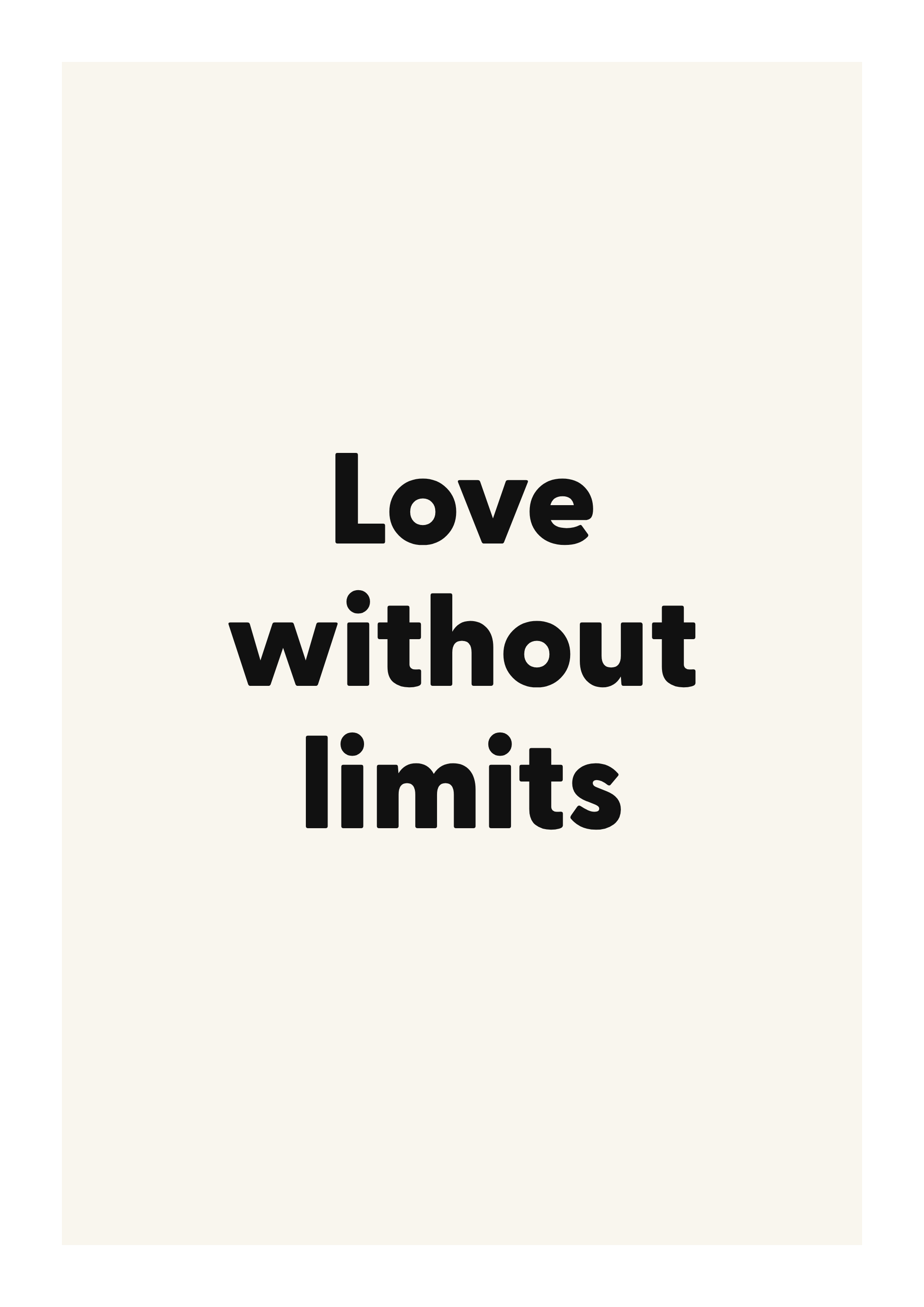 Bring warmth and connection to your walls with this romantic quote poster. Featuring the words “Love without limits”, this design is made to feel personal without overwhelming the room.