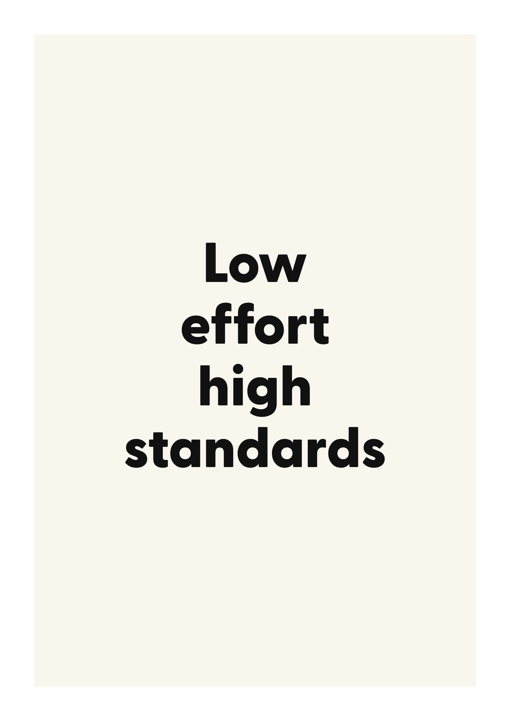 A bold statement typography print featuring “Low effort high standards” — designed to add personality to a modern gallery wall.
