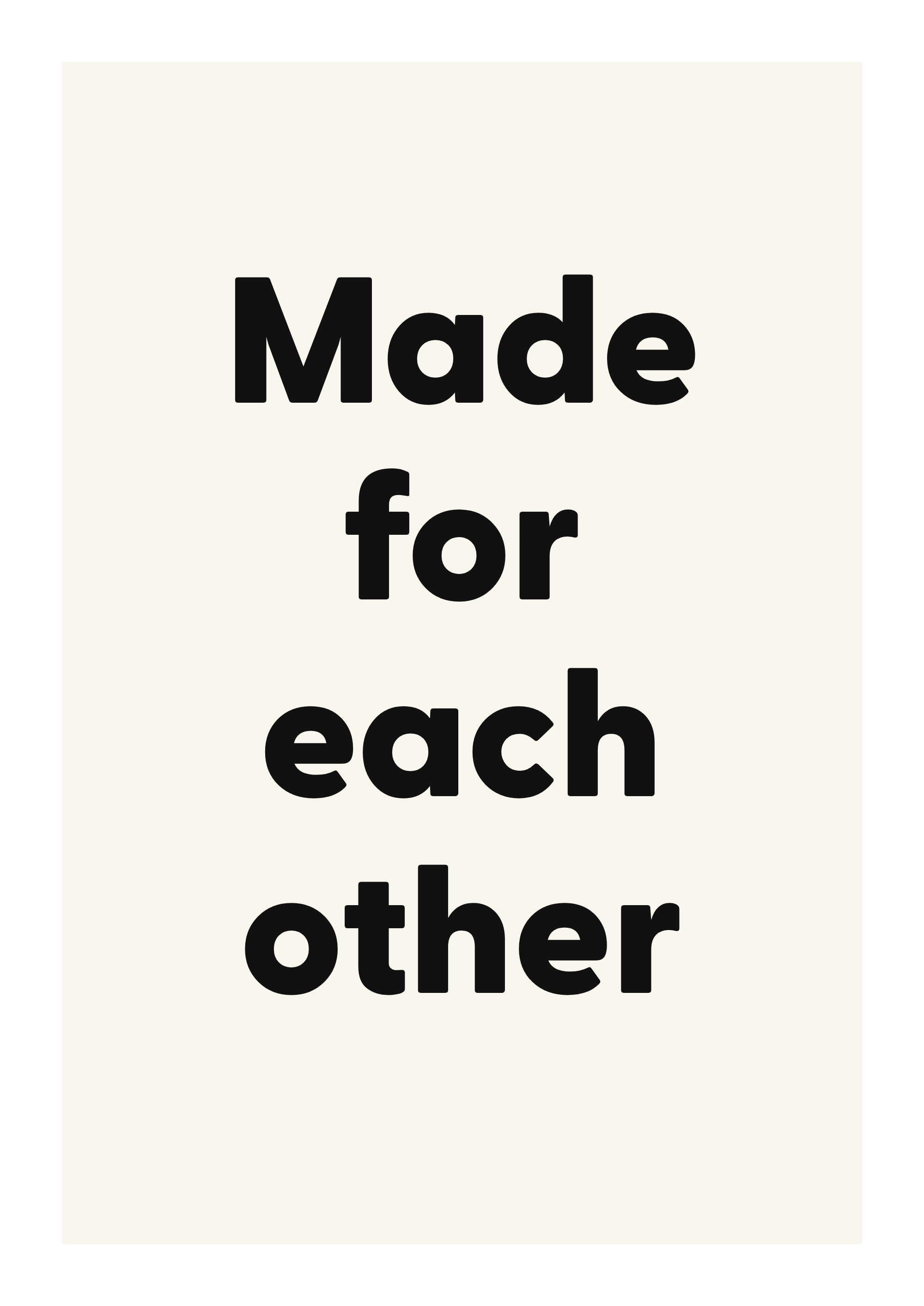 Bring warmth and connection to your walls with this romantic quote poster. Featuring the words “Made for each other”, this design is made to feel personal without overwhelming the room.
