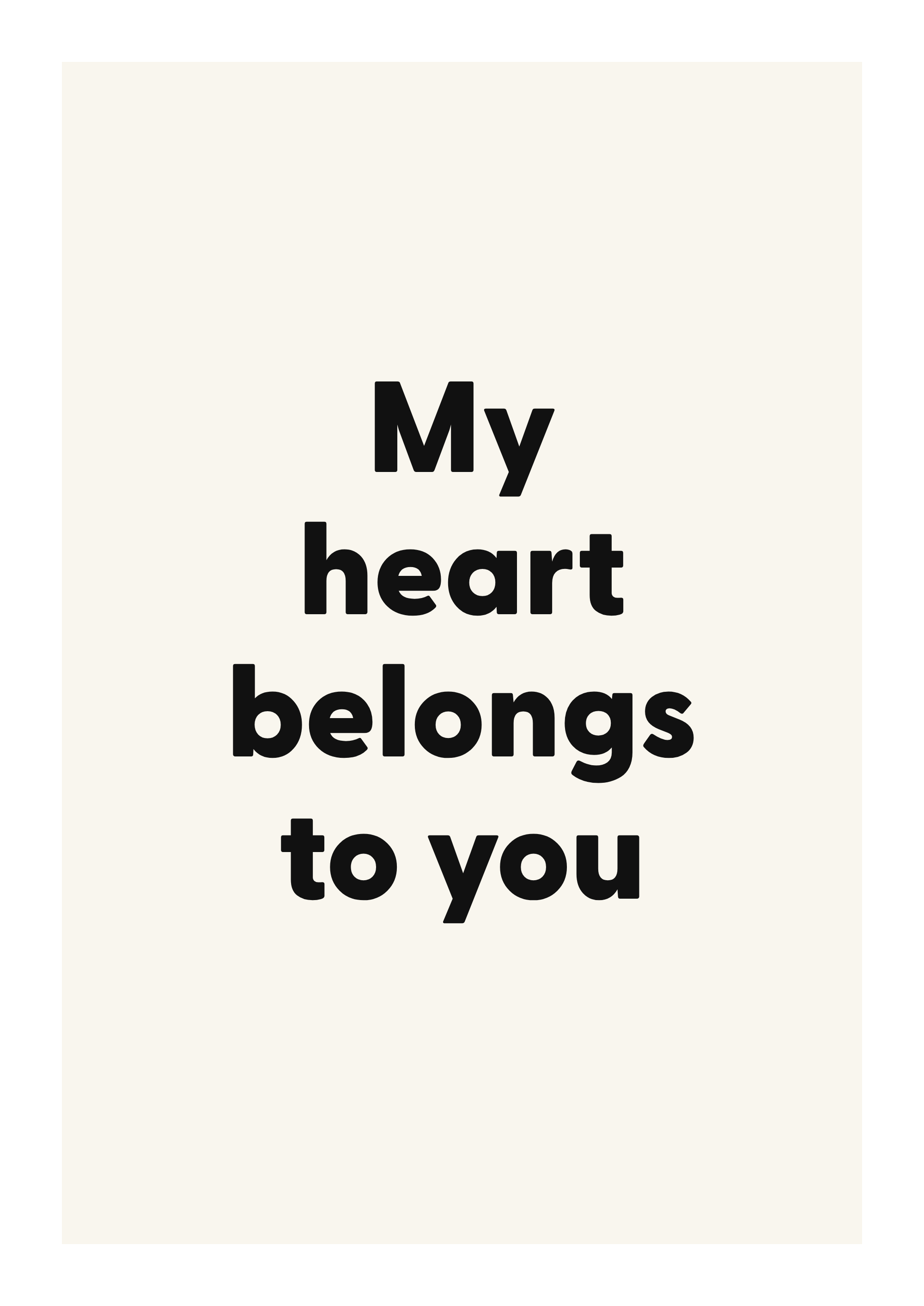 Bring warmth and connection to your walls with this romantic quote poster. Featuring the words “My heart belongs to you”, this design is made to feel personal without overwhelming the room.