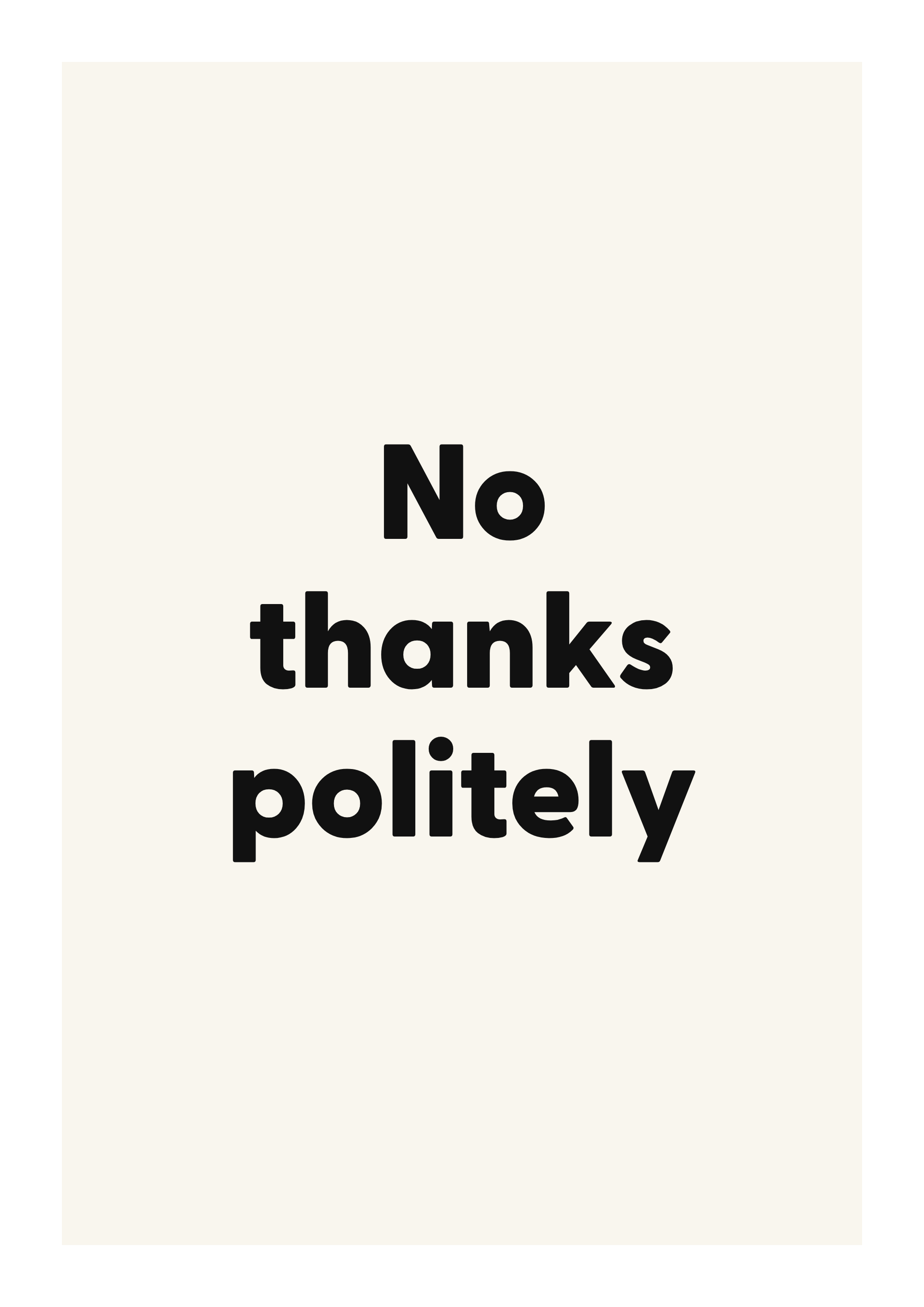 Make your gallery wall feel more expressive with this bold, playful quote poster. Featuring the words “No thanks politely”, this design is made to feel personal without overwhelming the room.