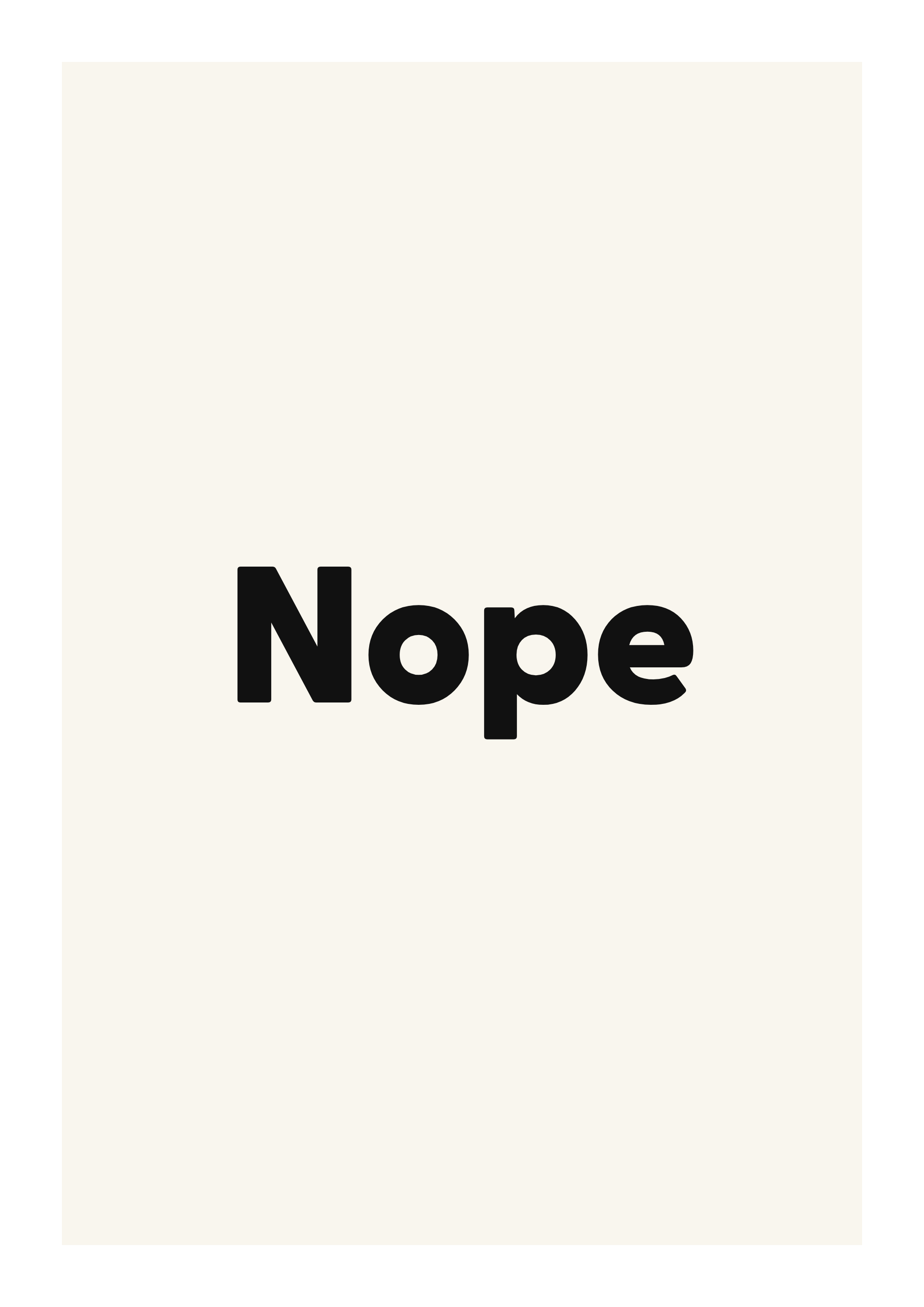 Make your gallery wall feel more expressive with this bold, playful quote poster. Featuring the words “Nope”, this design is made to feel personal without overwhelming the room.