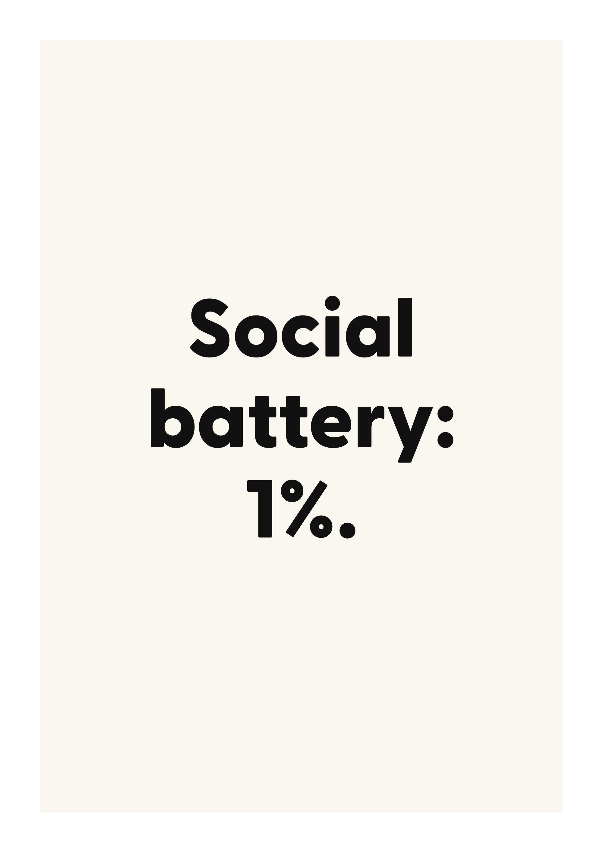 Bring sharp humor and zero-filter energy to your space with this adult quote poster. Featuring the words “Social battery: 1%.”, this design is made to feel personal without overwhelming the room.