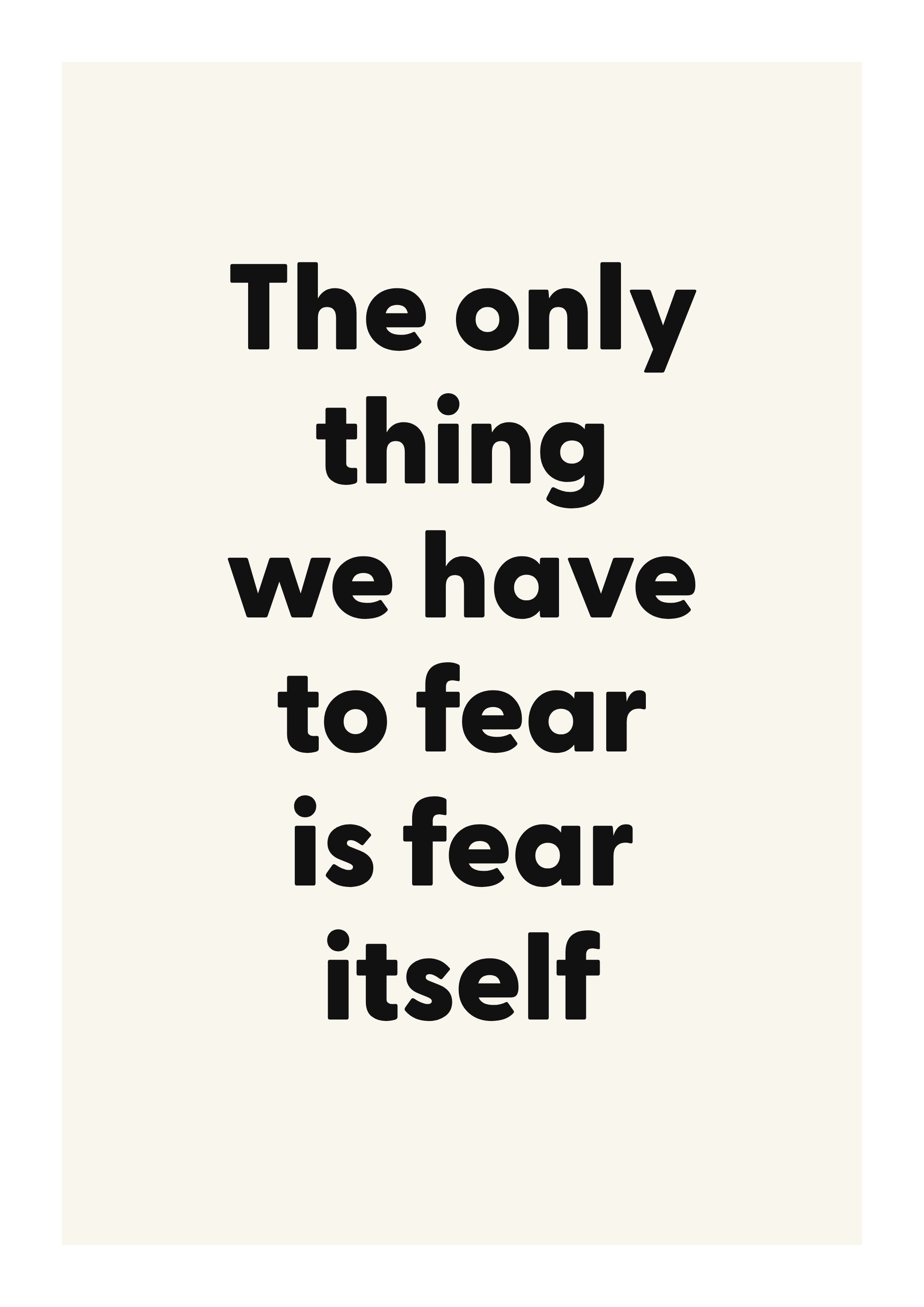 Celebrate timeless writing with this literary quote poster, designed for readers and thoughtful interiors. Featuring the words “The only thing we have to fear is fear itself”, this design is made to feel personal without overwhelming the room.