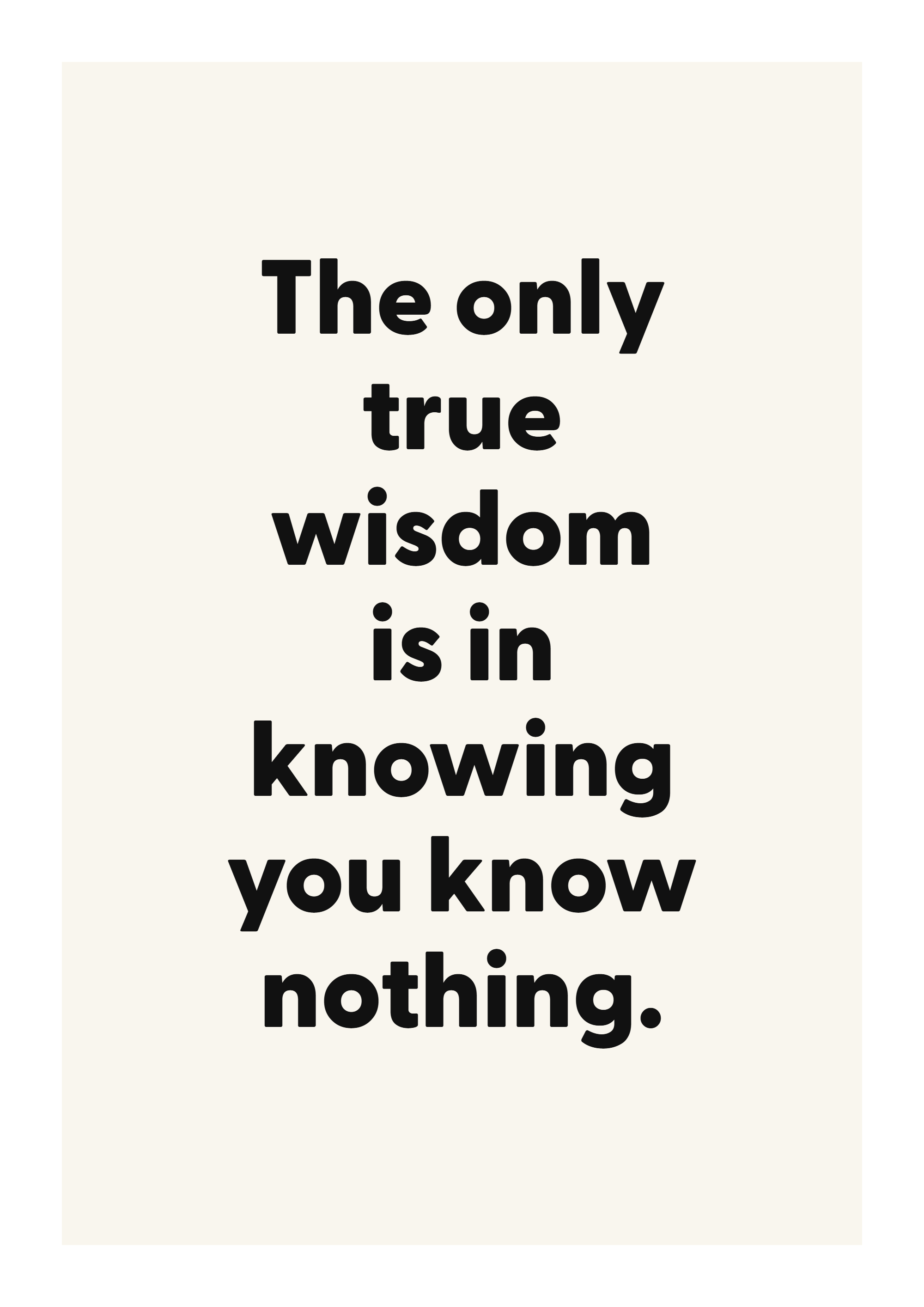 Add a daily reminder of perspective and momentum with this motivational quote poster. Featuring the words “The only true wisdom is in knowing you know nothing.”, this design is made to feel personal without overwhelming the room.