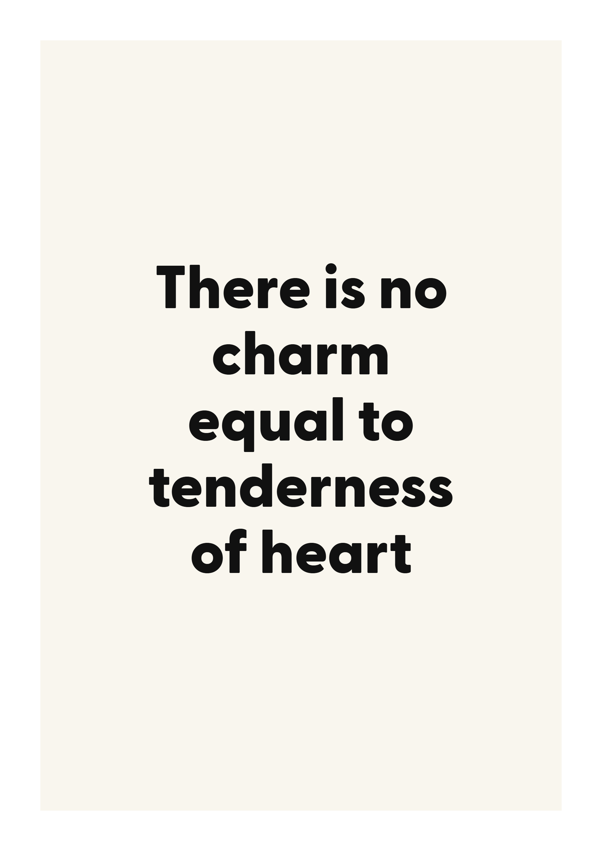 Celebrate timeless writing with this literary quote poster, designed for readers and thoughtful interiors. Featuring the words “There is no charm equal to tenderness of heart”, this design is made to feel personal without overwhelming the room.