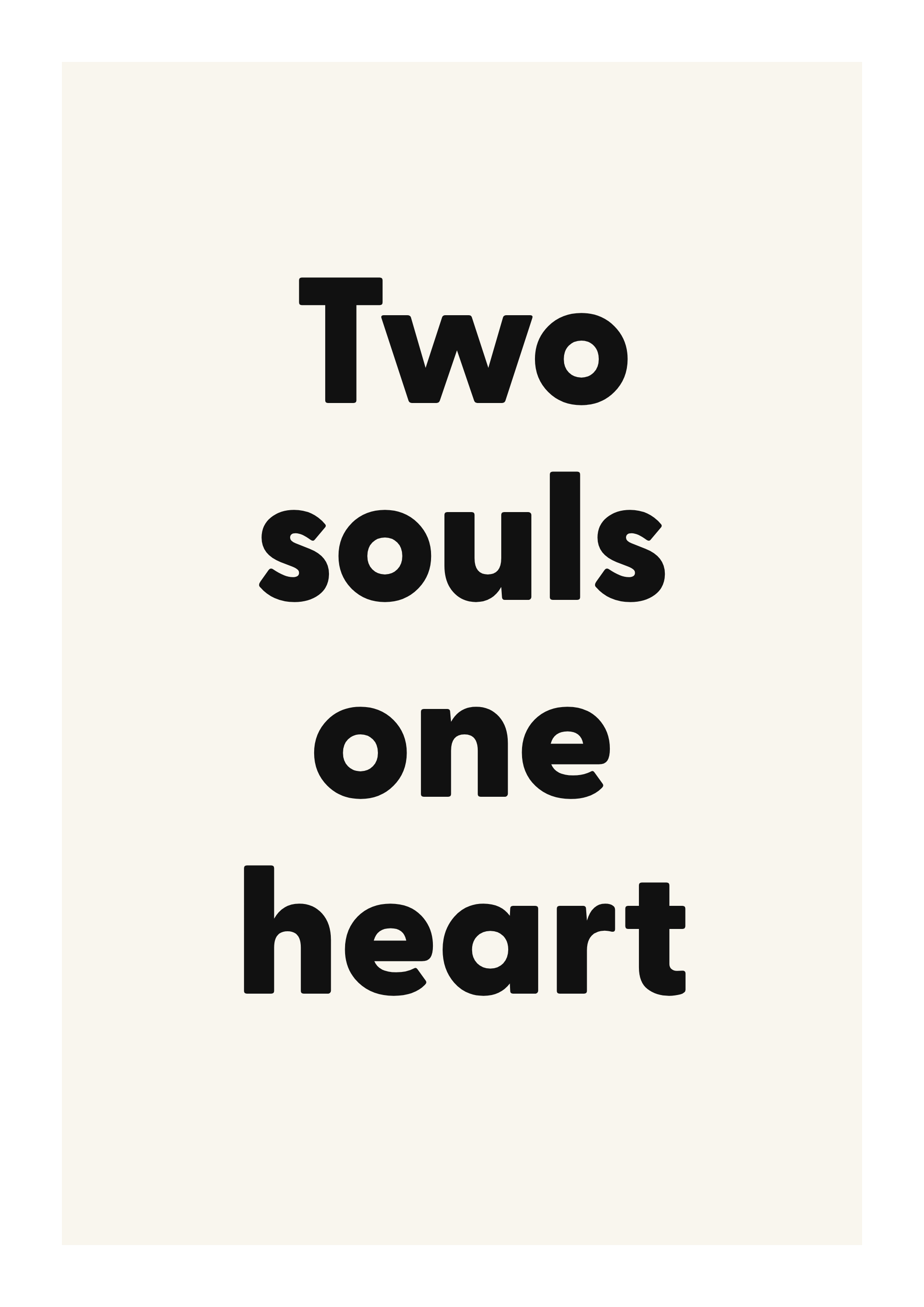 Bring warmth and connection to your walls with this romantic quote poster. Featuring the words “Two souls one heart”, this design is made to feel personal without overwhelming the room.