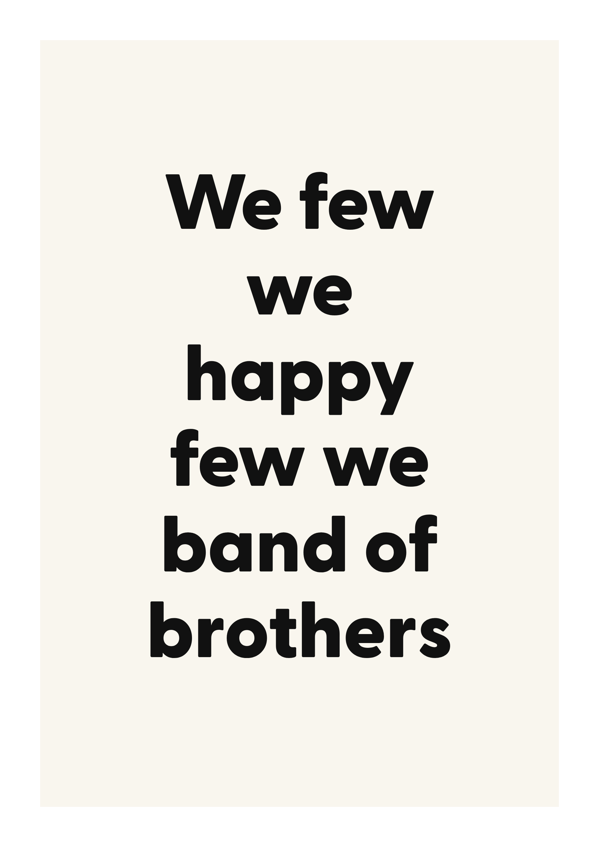 Celebrate timeless writing with this literary quote poster, designed for readers and thoughtful interiors. Featuring the words “We few we happy few we band of brothers”, this design is made to feel personal without overwhelming the room.