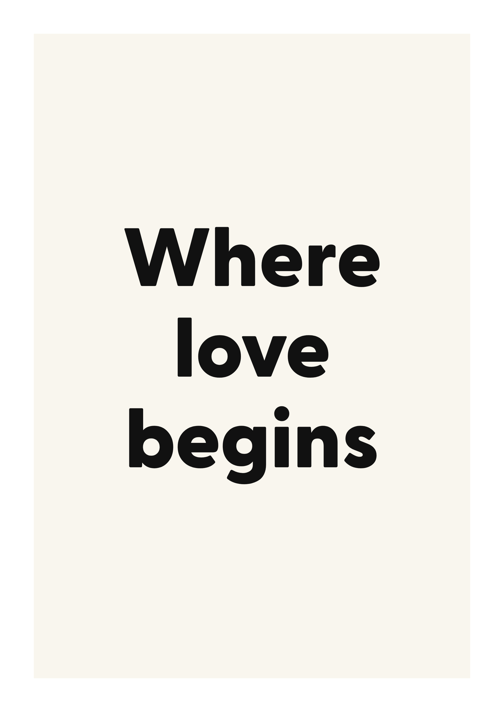Bring warmth and connection to your walls with this romantic quote poster. Featuring the words “Where love begins”, this design is made to feel personal without overwhelming the room.