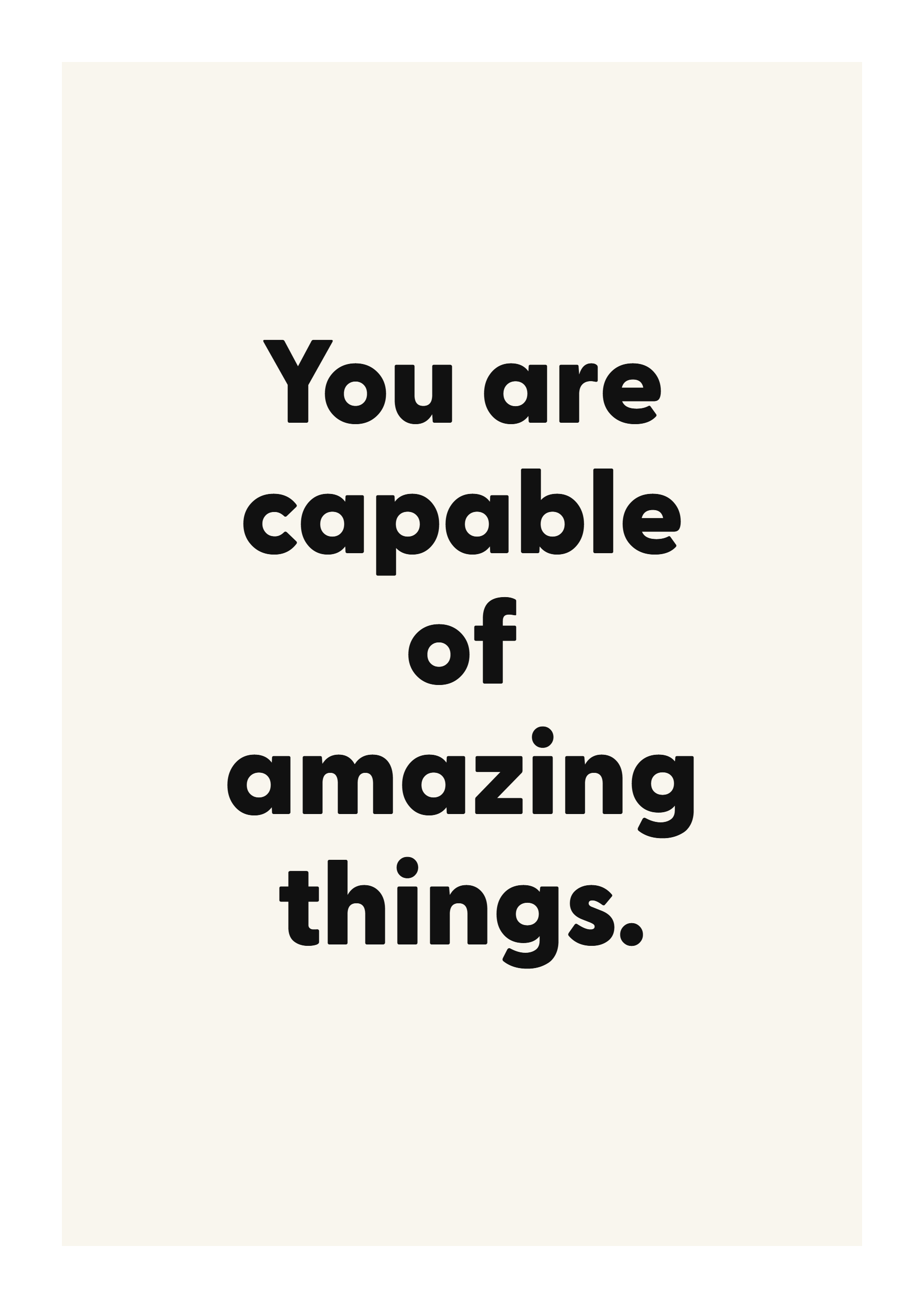 Add a daily reminder of perspective and momentum with this motivational quote poster. Featuring the words “You are capable of amazing things.”, this design is made to feel personal without overwhelming the room.