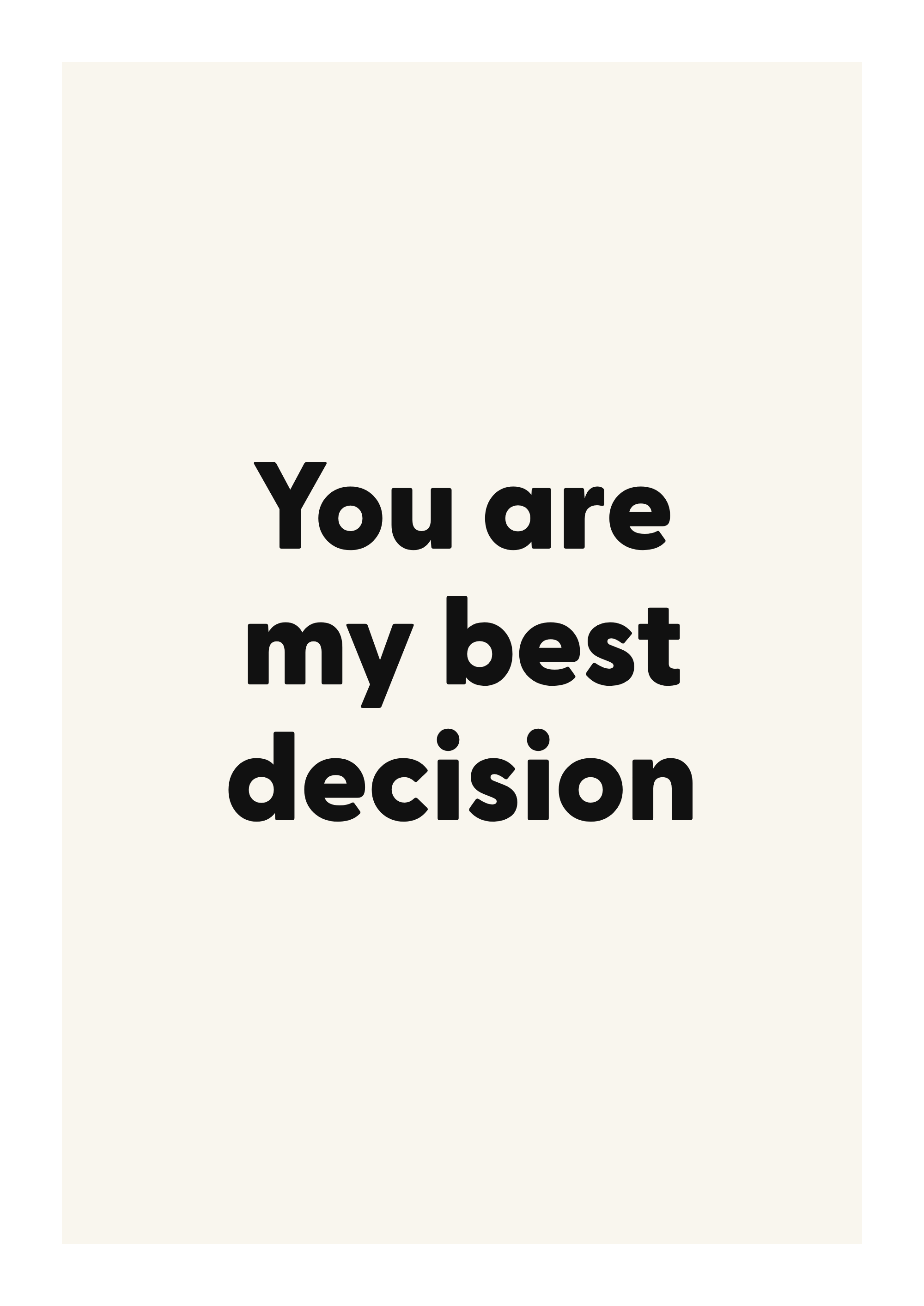 Bring warmth and connection to your walls with this romantic quote poster. Featuring the words “You are my best decision”, this design is made to feel personal without overwhelming the room.