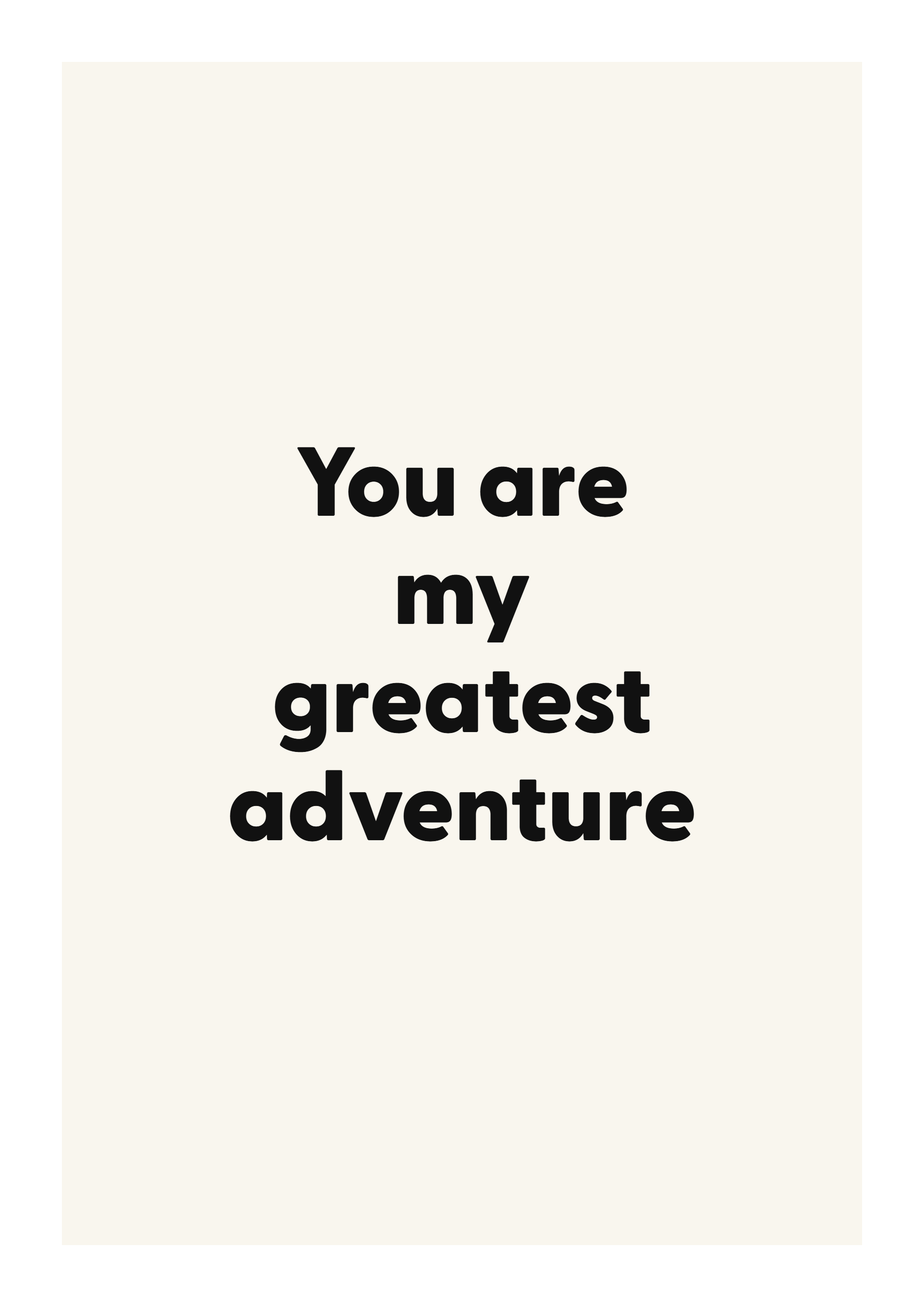 Bring warmth and connection to your walls with this romantic quote poster. Featuring the words “You are my greatest adventure”, this design is made to feel personal without overwhelming the room.